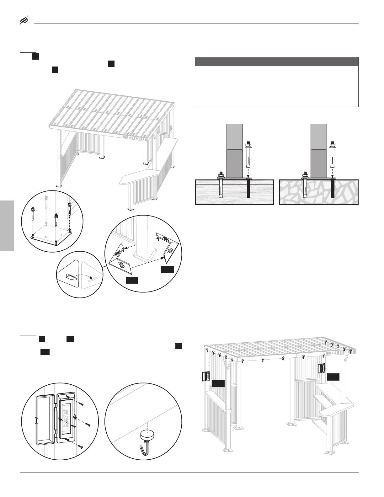 que monte y asegure los pies de madera o concreto. Esto es