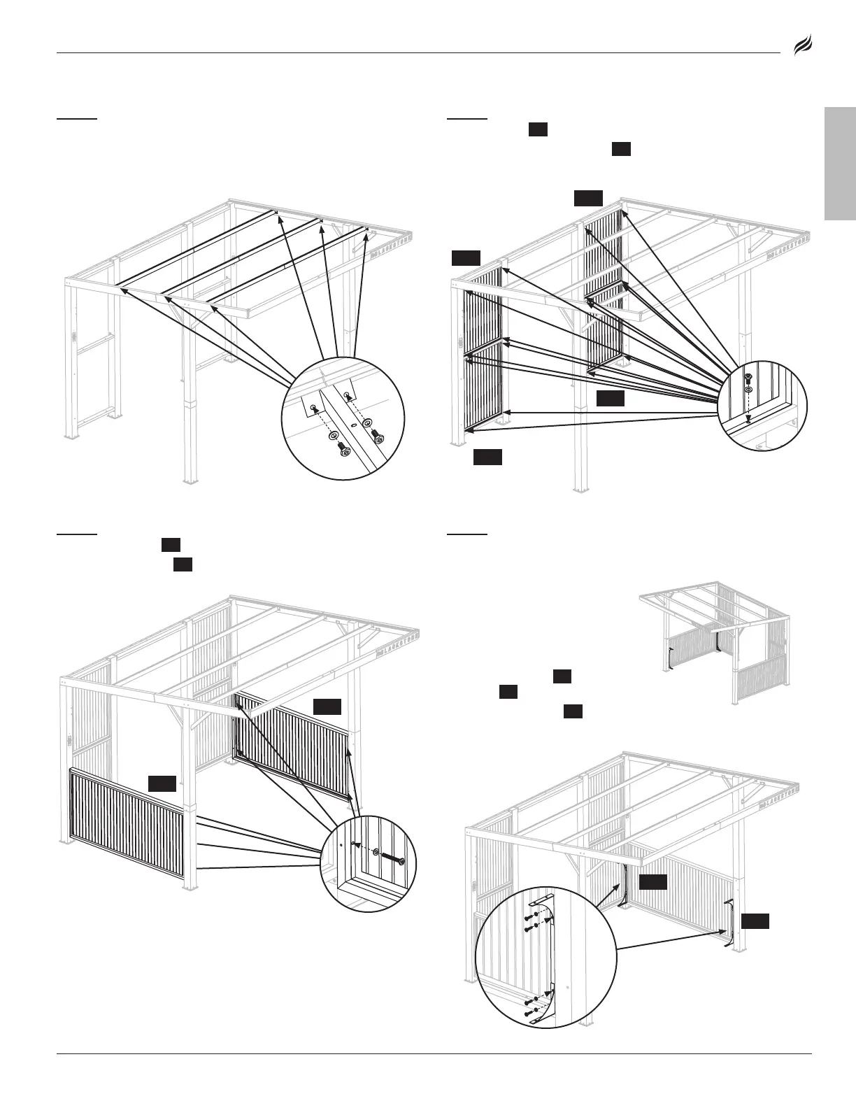 one (1) side panel 3 {J3} to the outer posts.