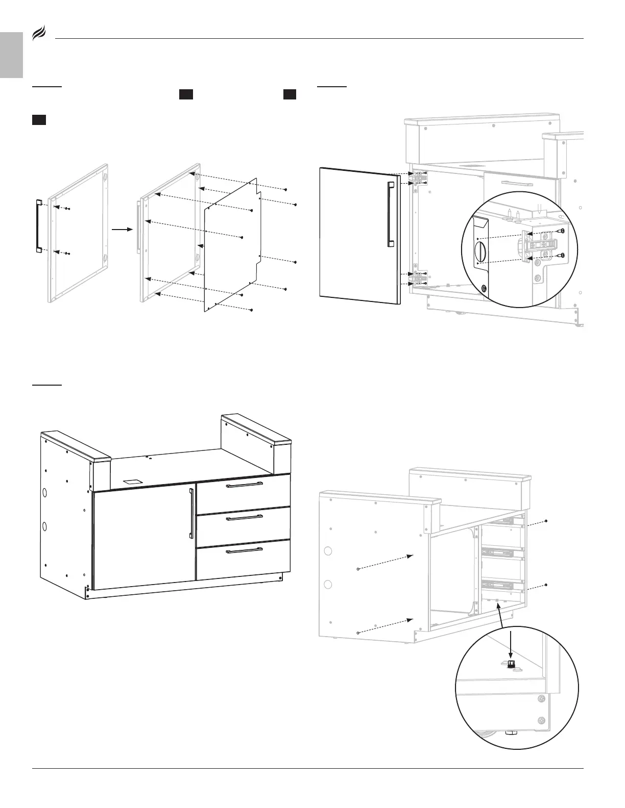 Use four (4) small screws [f.] to attach the door to the