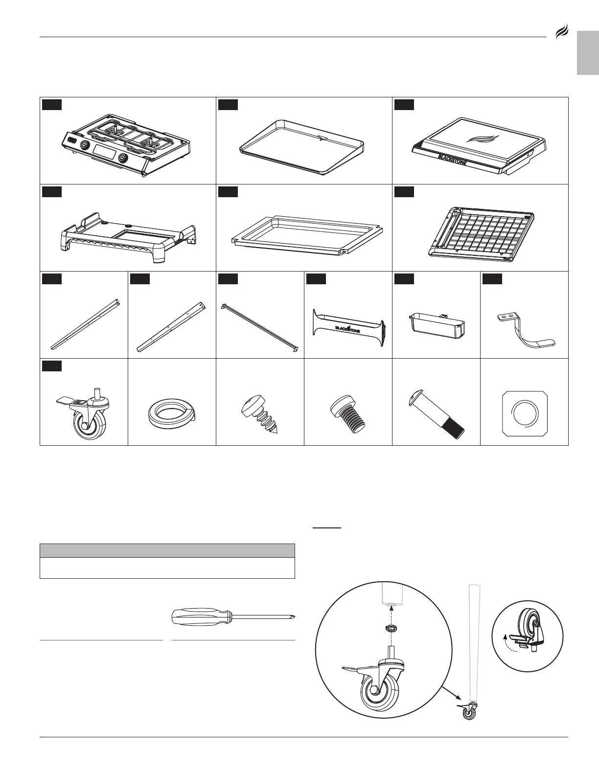 and three (3) legs. (Be sure the wheels are locked.)