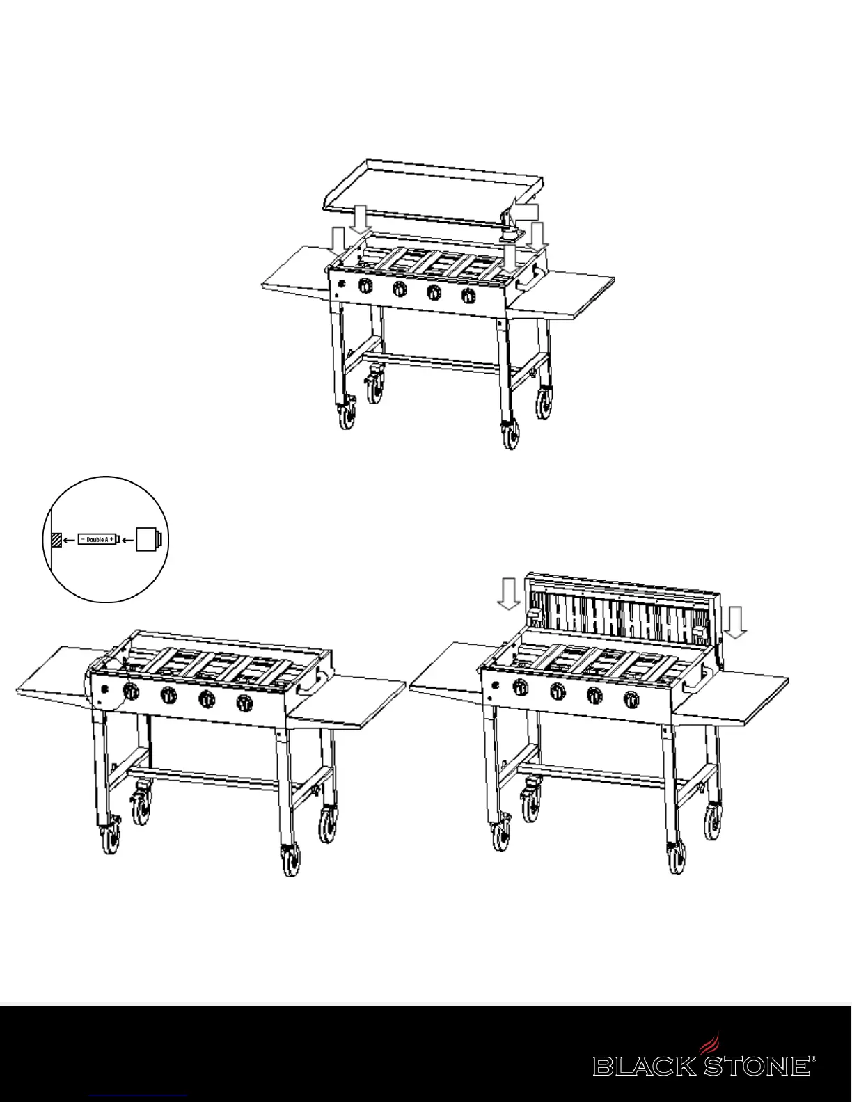 Black Stone COMMERCIAL GRIDDLE - Griddle Assembly Completion; Attaching Shelves and Final Steps; Optional Grill Box Placement