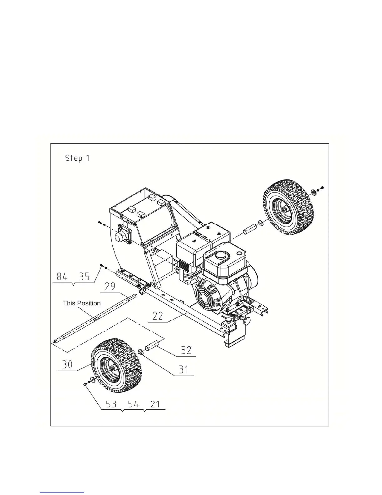 Step 1: Put wheel (#30), flat washer Ø20 (#31), wheel bushing (#32) and wheel