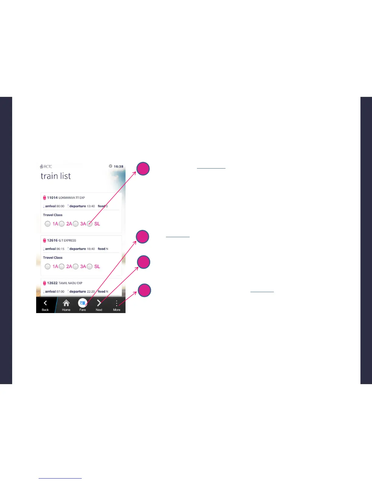 Click Fare-avail icon button to get the fare of the selected train and travel