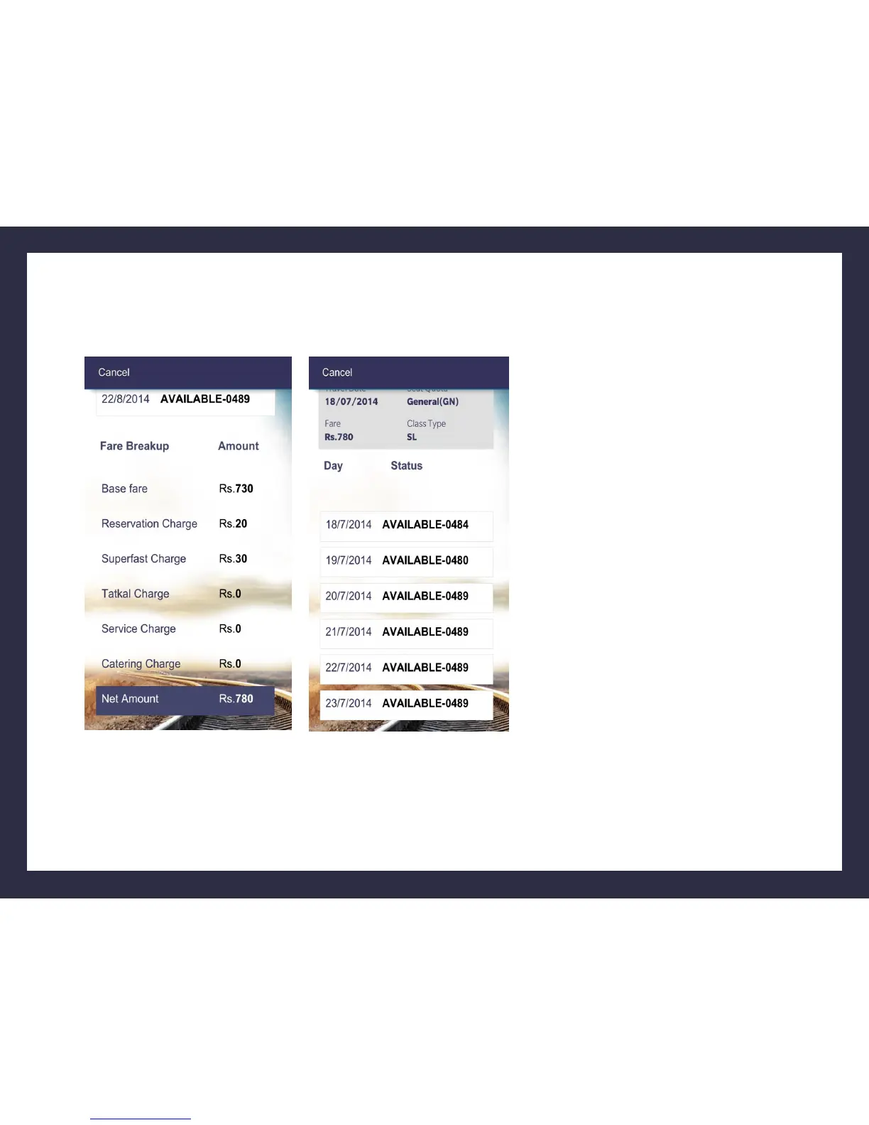 displays the availability of Seat/Berth from
