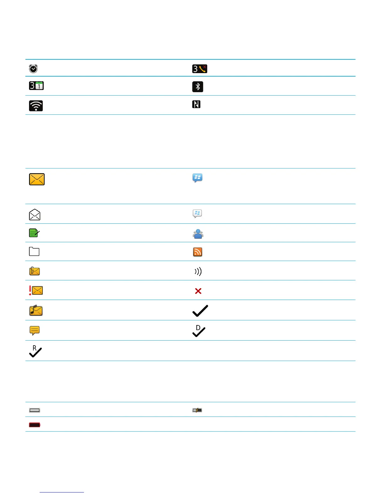 Depending on your BlackBerry smartphone model and wireless service provider, some of these icons might not appear.