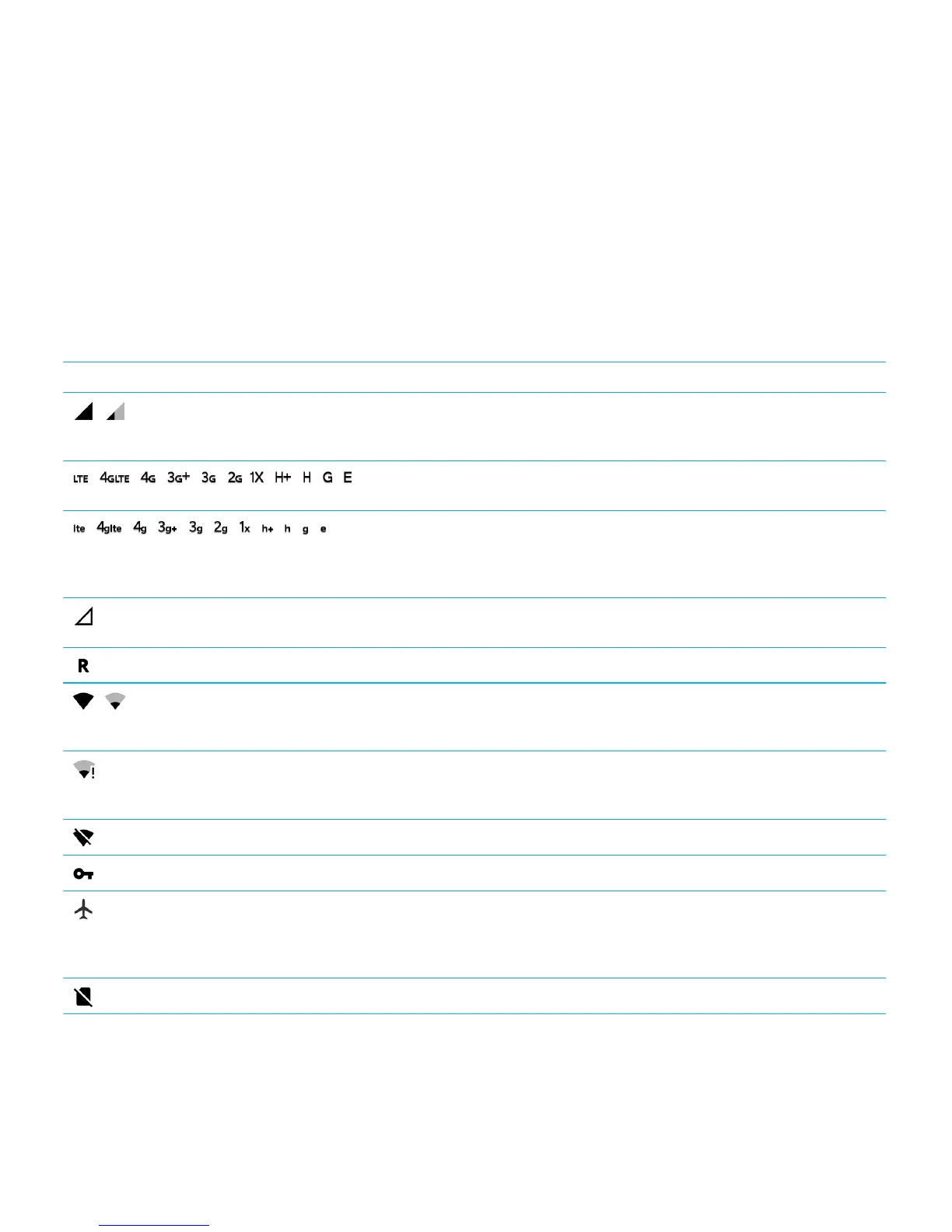The following icons might appear at the top of your screen to indicate the wireless coverage level that your device currently
