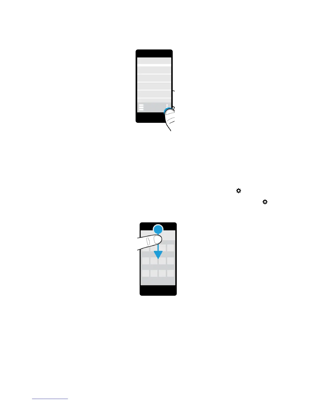 • To find the settings and help for an app, swipe down from the top of the screen.