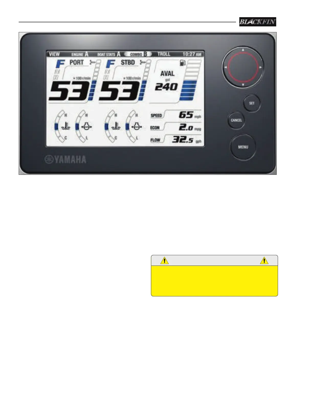 boat. Refer to the engine display and electronics