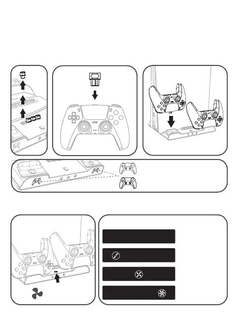 upside down into the charging dock for controllers located in the Stand, as indicated in the illustration.