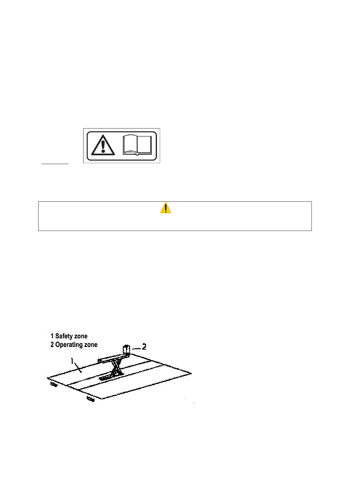 presence of any person in the safety zone (1) is strictly forbidden. The presence of people under the vehicle is