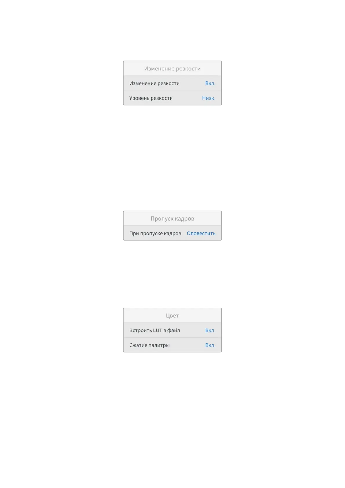 Данная настройка позволяет задать действие при обнаружении пропущенных кадров. Когда
