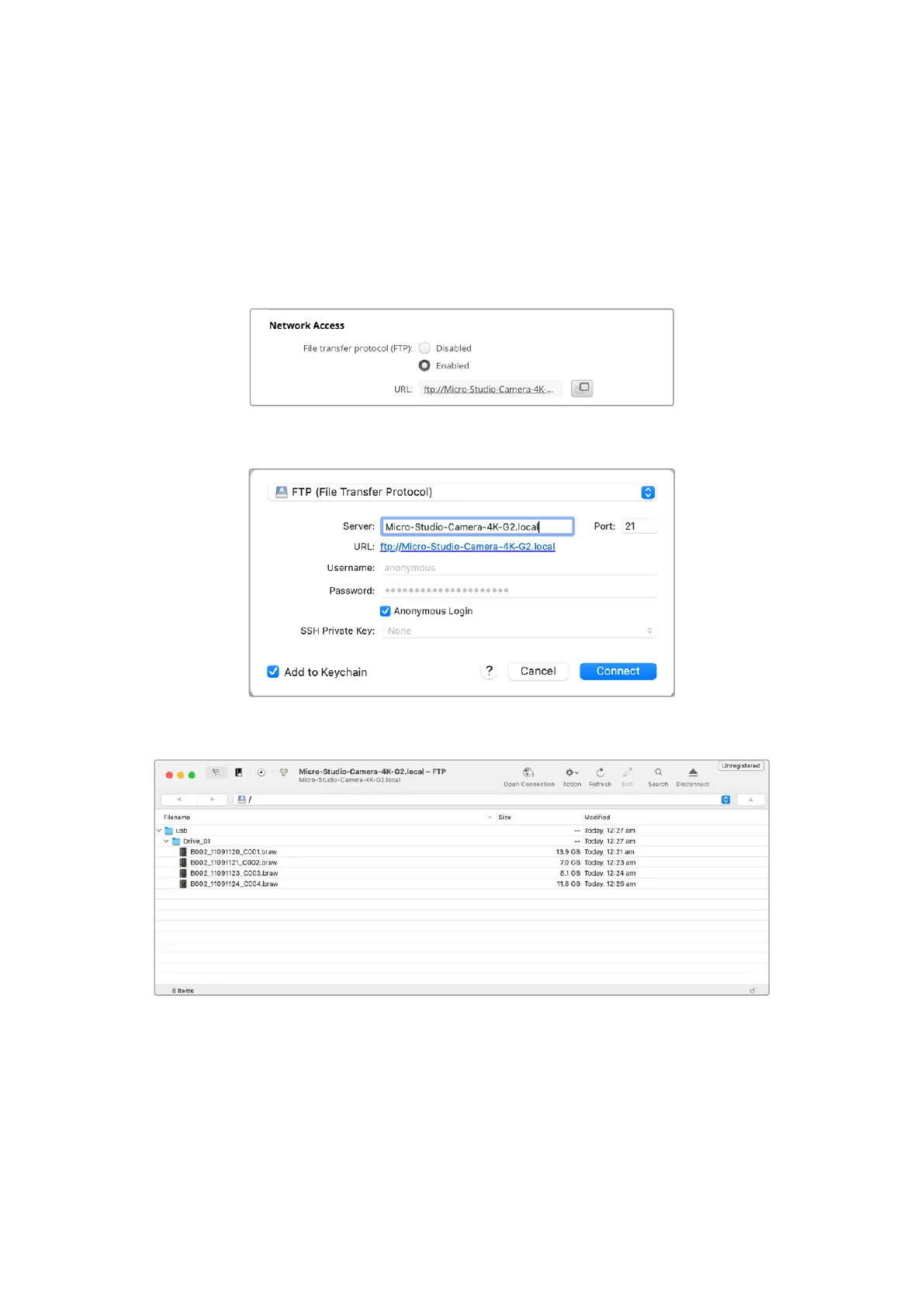 будет подключен ккамере. Рекомендуется использоватьCyberduck, FileZilla илиTransmit,