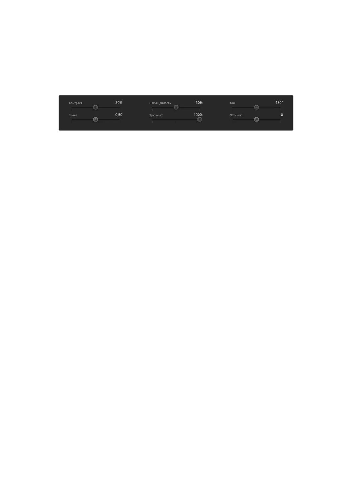 Для изменения контраста, насыщенности, оттенка ибаланса яркости передвиньте слайдеры