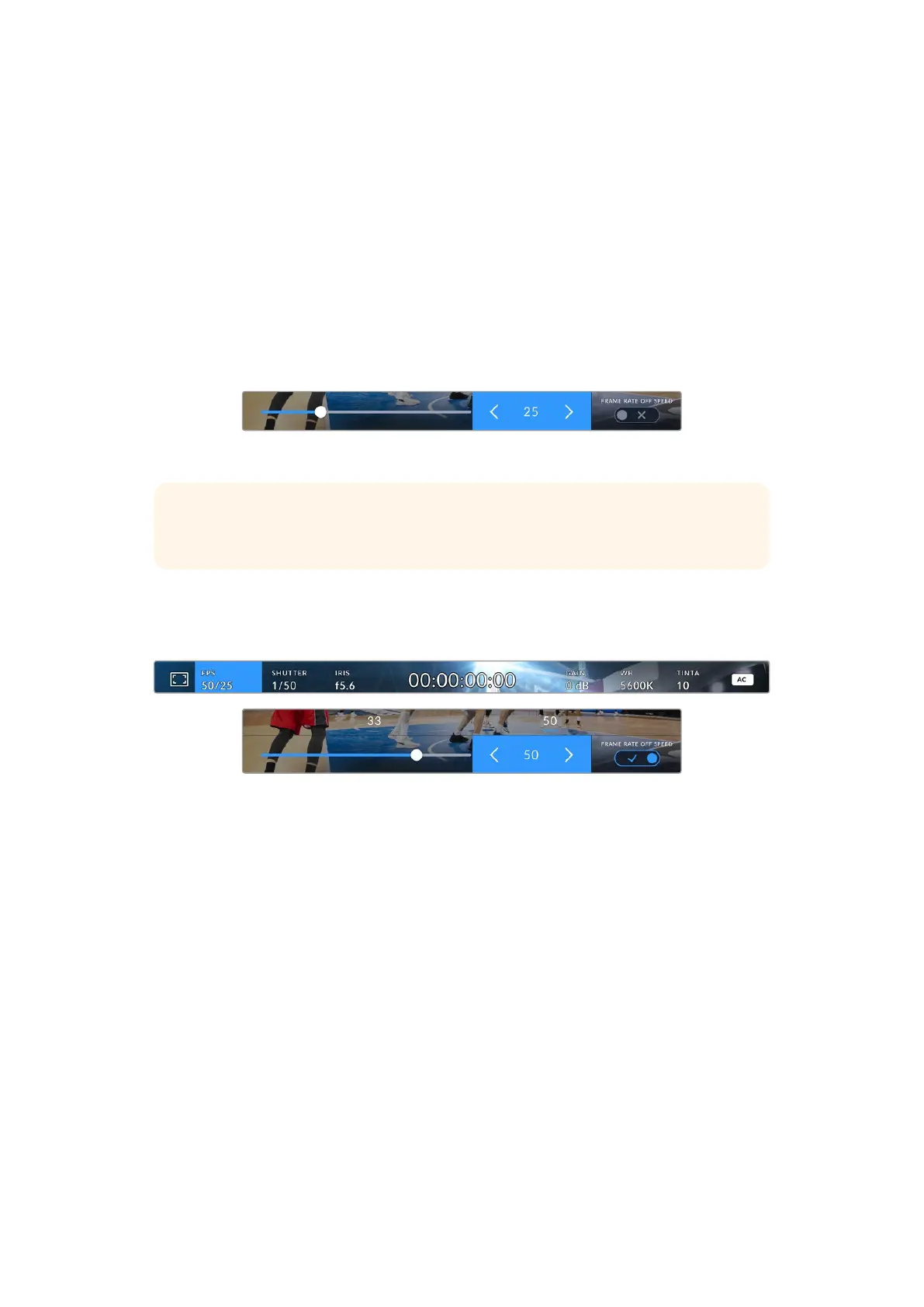 Tocca i pulsanti delle frecce della camera per cambiare il frame rate del progetto
