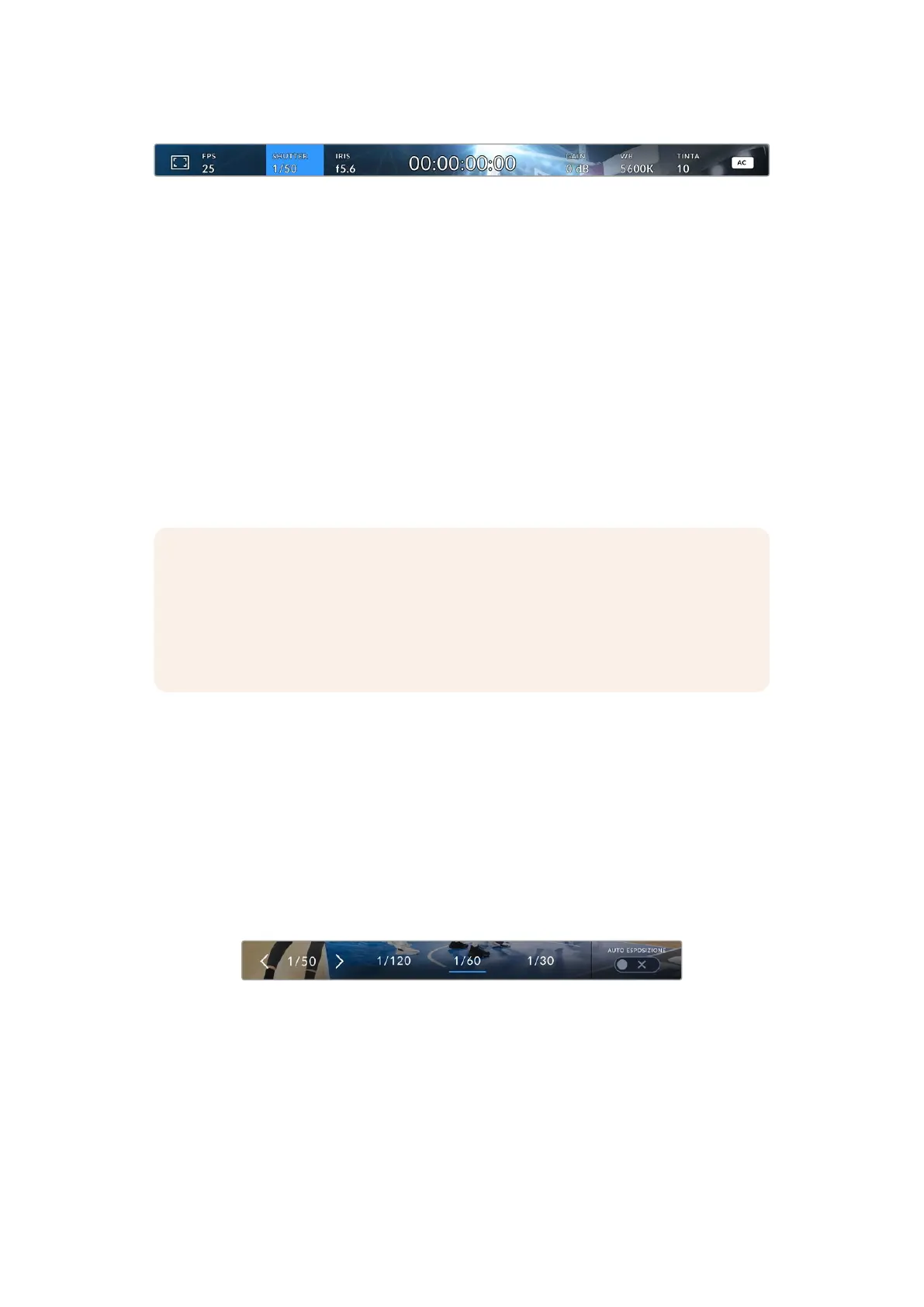 al frame rate, per esempio 1/25 per 25p o 1/30 per 30p. La velocità dell’otturatore più bassa