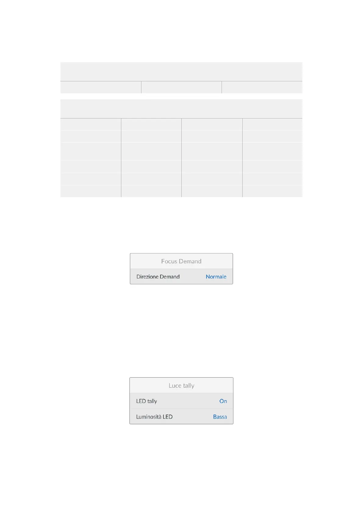 Consulta la sezione “Blackmagic Zoom Demand e Focus Demand” per maggiori informazioni su