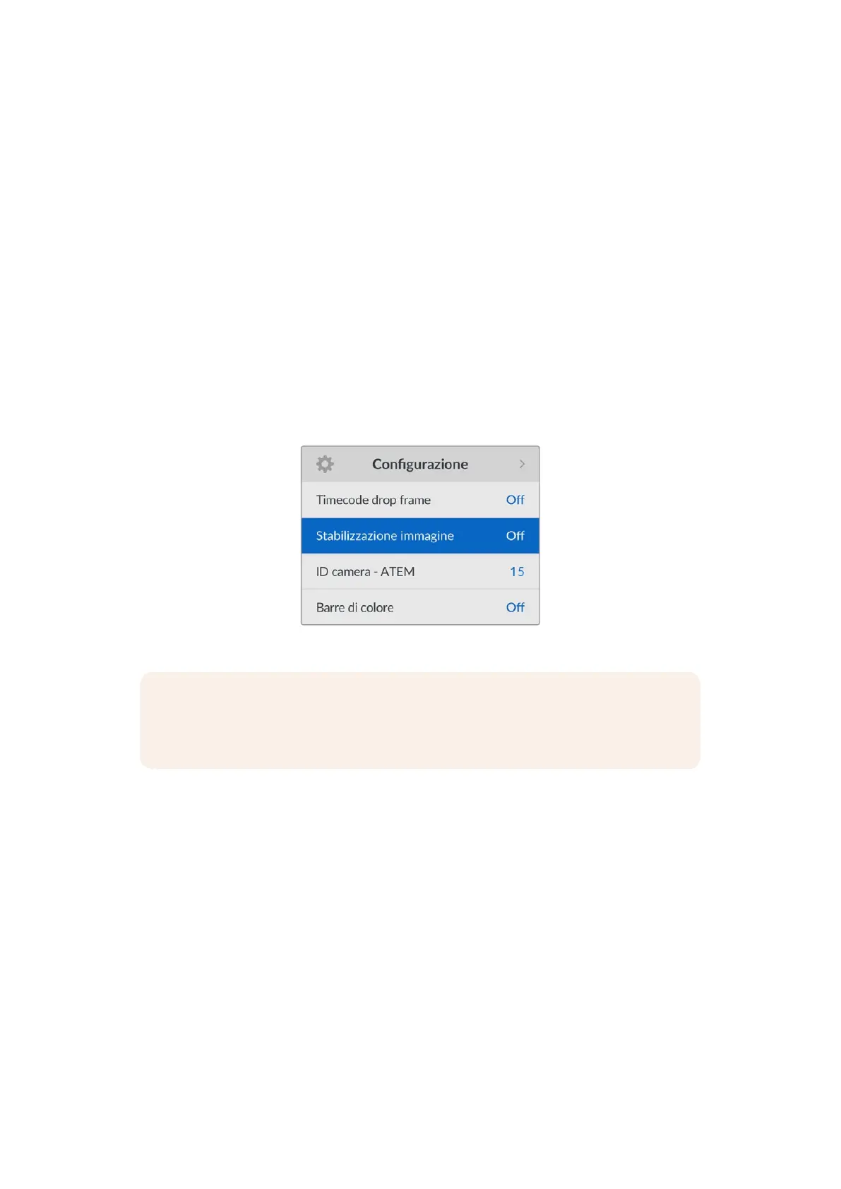 1 Nel menù Configurazione seleziona Stabilizzazione immagine.
