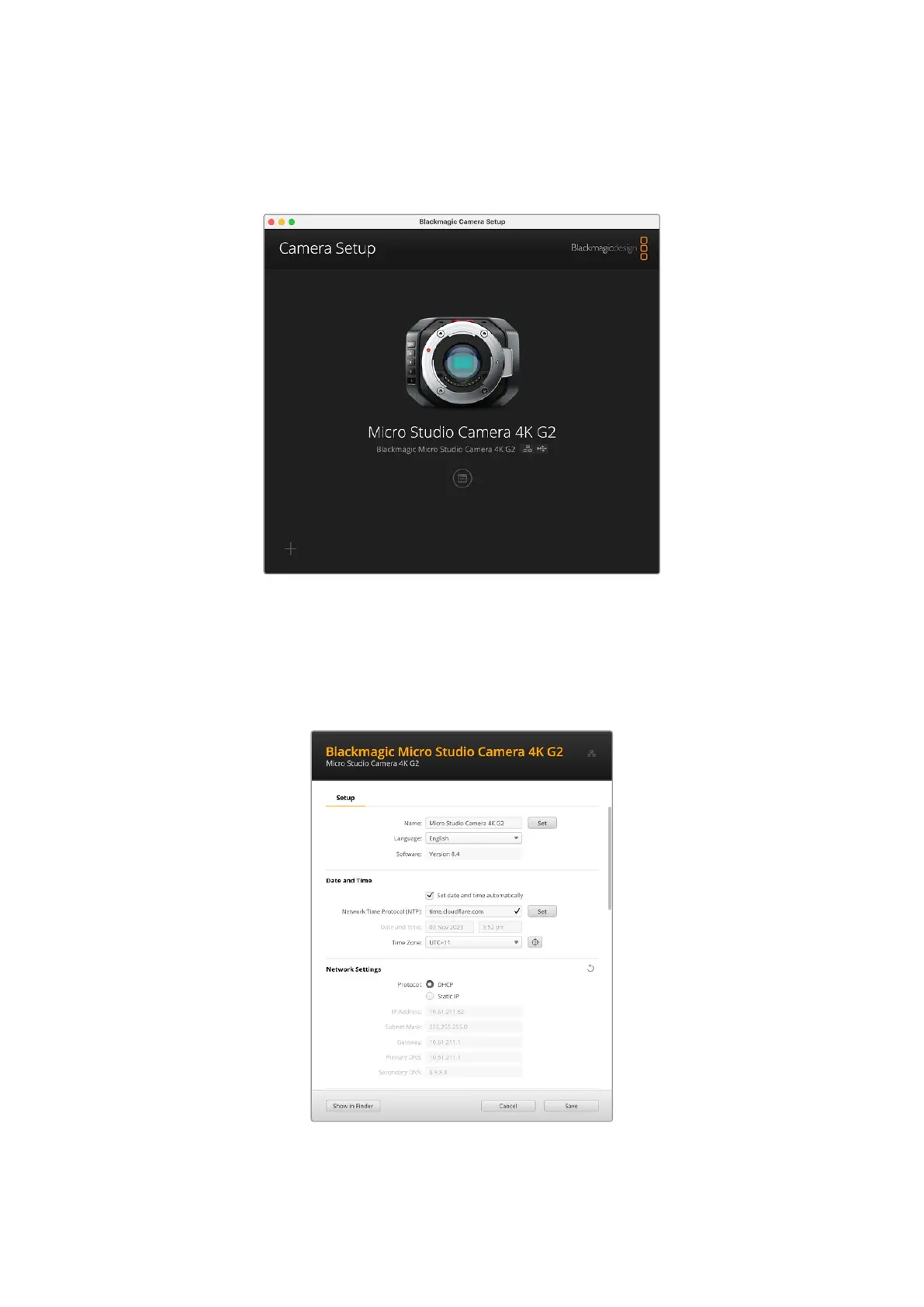 2 Apri Blackmagic Camera Setup. Il nome della tua Micro Studio Camera 4K G2 è indicato