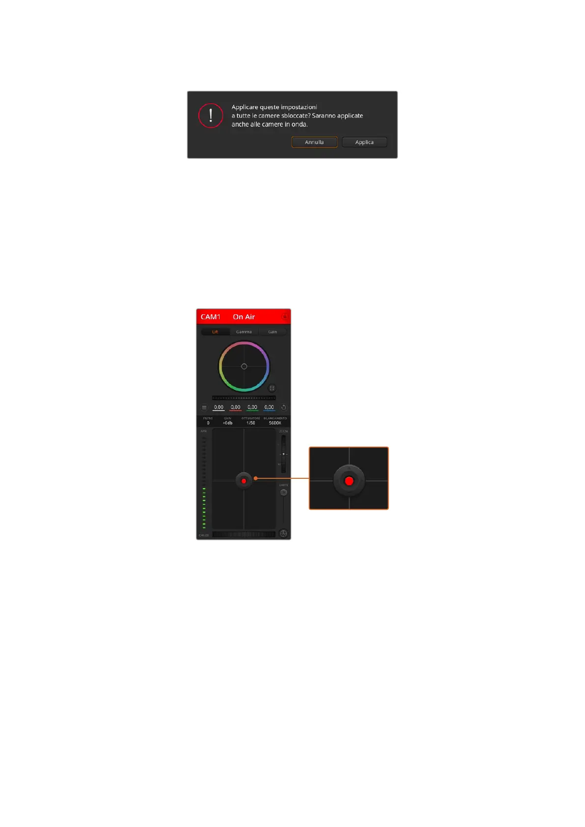 sottostante la ruota di colore e diventa rosso quando la camera è in onda.