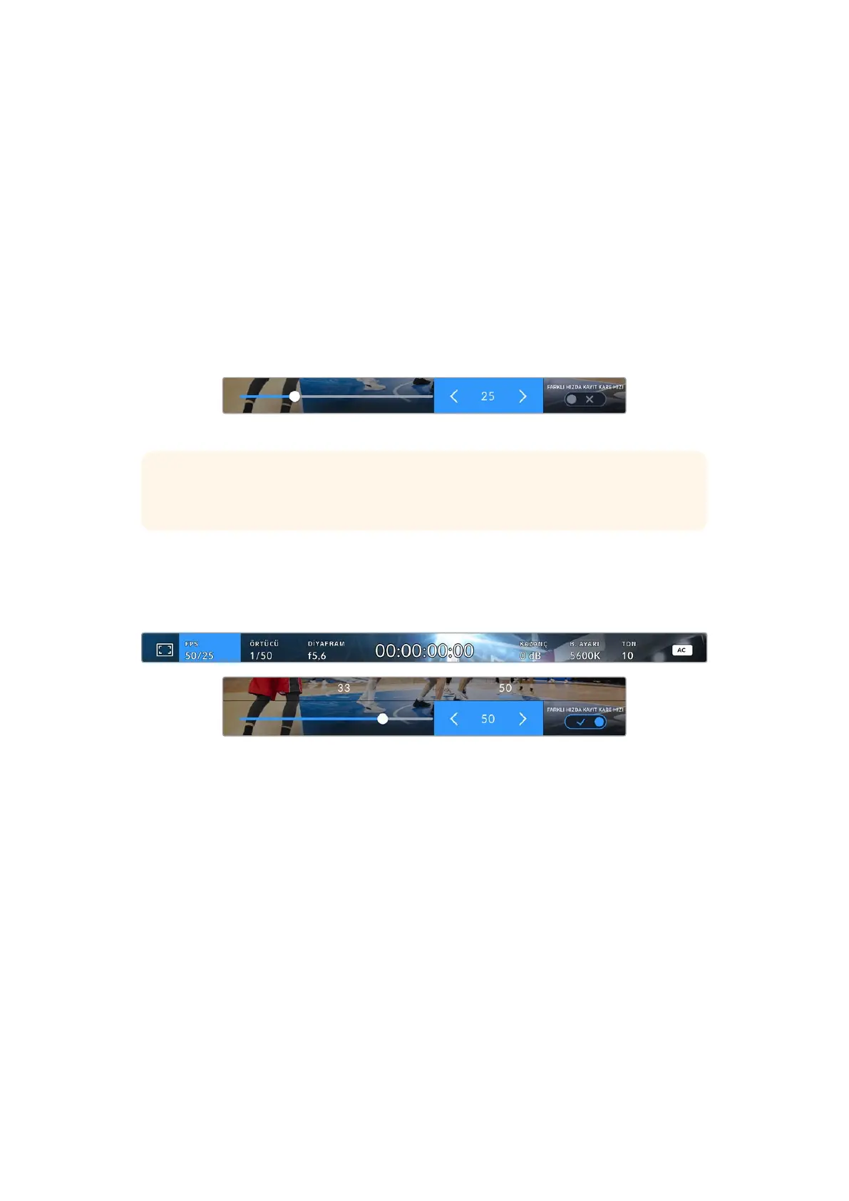 kare hızlarını değiştirmenizi sağlar. Menüyü açmak için, “FPS” göstergesini seçin ve kameranızın