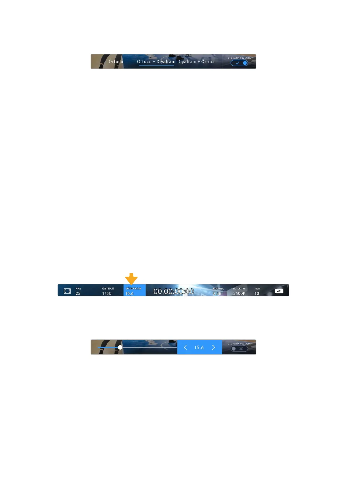 Diyafram ayarlarına erişmek için diyafram göstergesini kullanın
