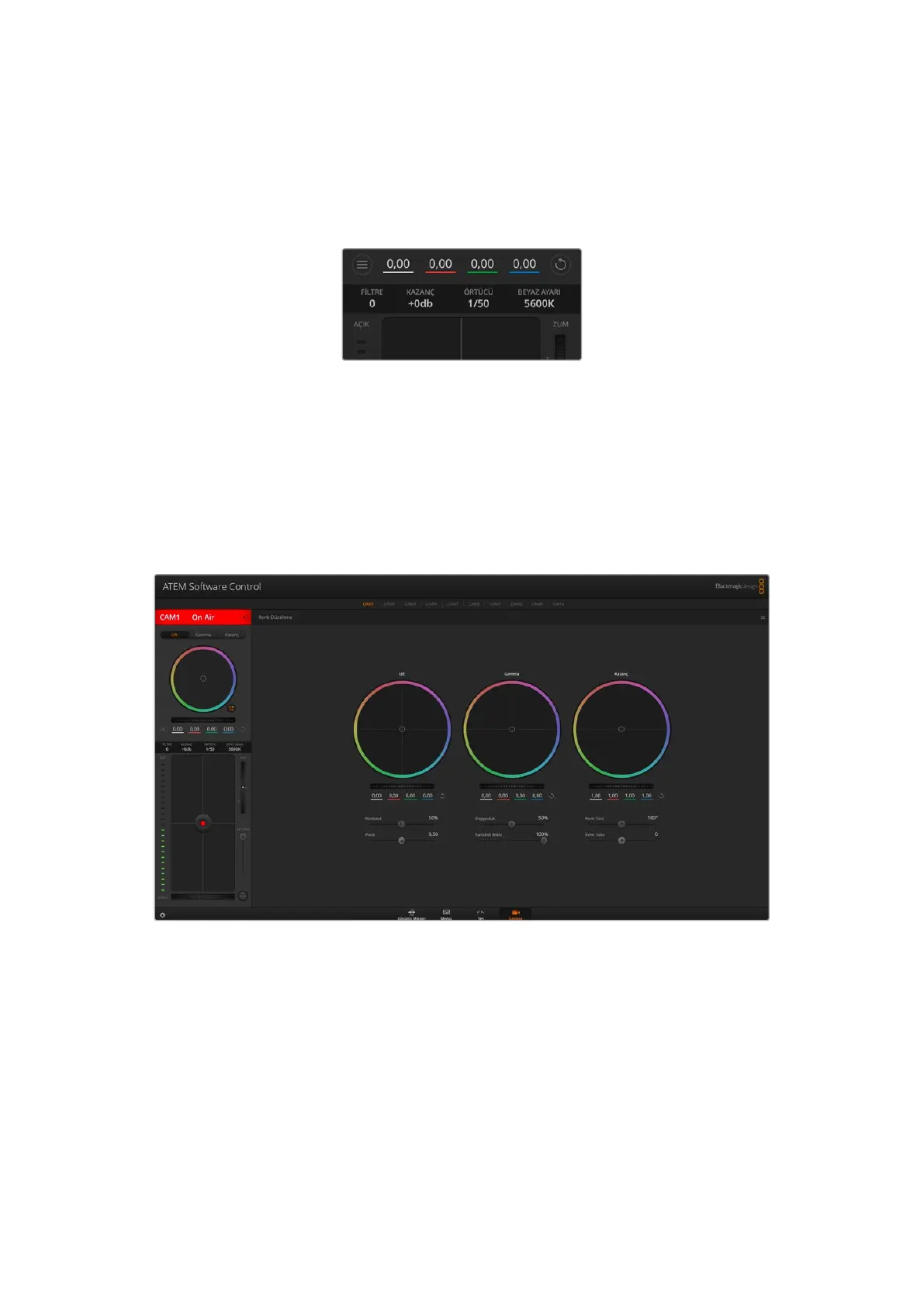 Renk düzeltmede deneyimliyseniz kamera kontrolünü, görüntü mikseri tarzı CCU arayüzünden,