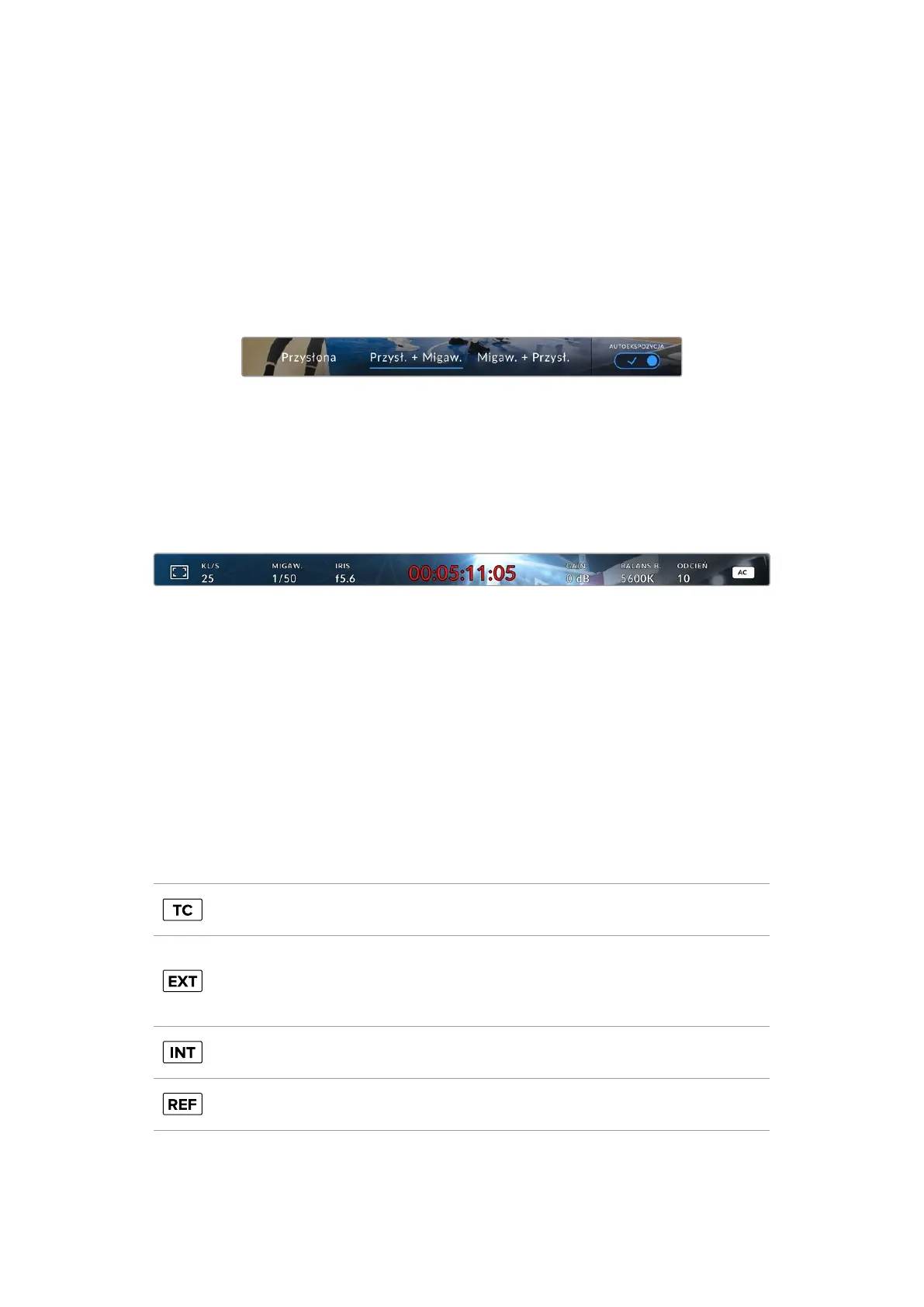 nagrywania klipów. Kod czasowy jest wtedy wyświetlany na czerwono.