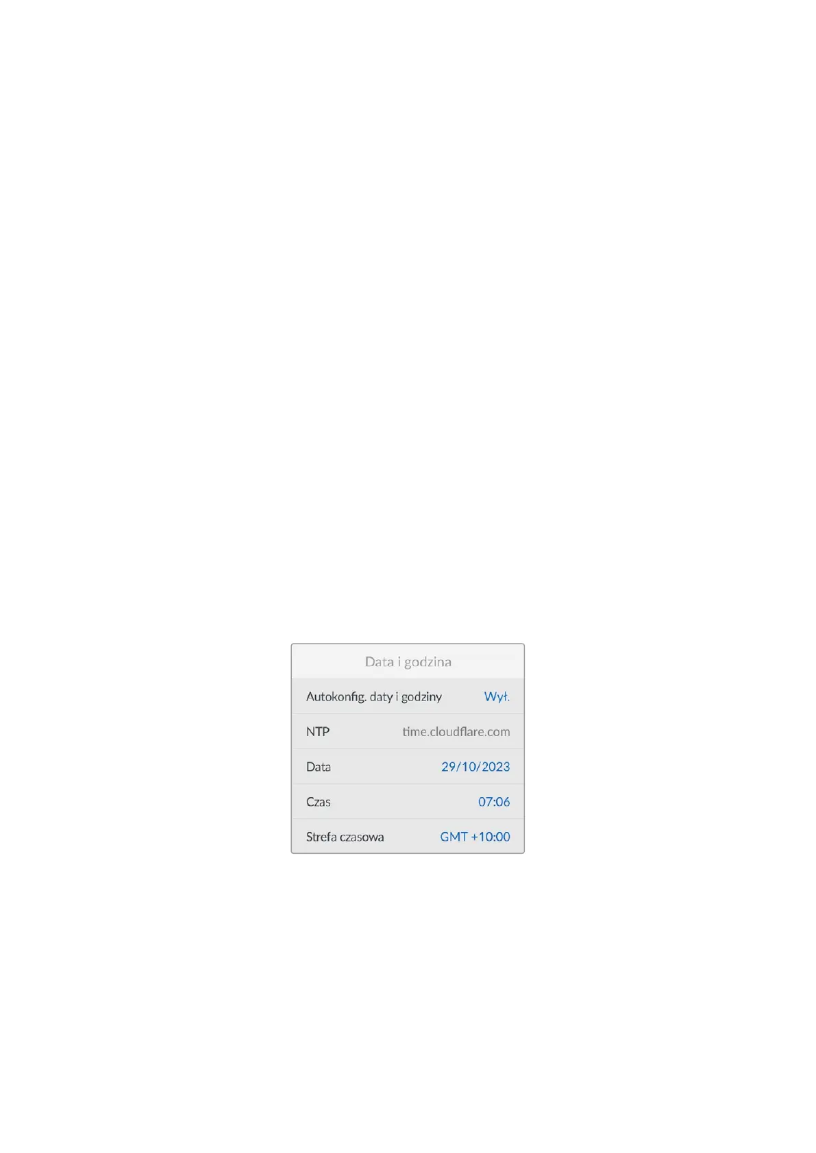 alternatywny serwer NTP za pomocą Blackmagic Camera Setup. Więcej informacji można
