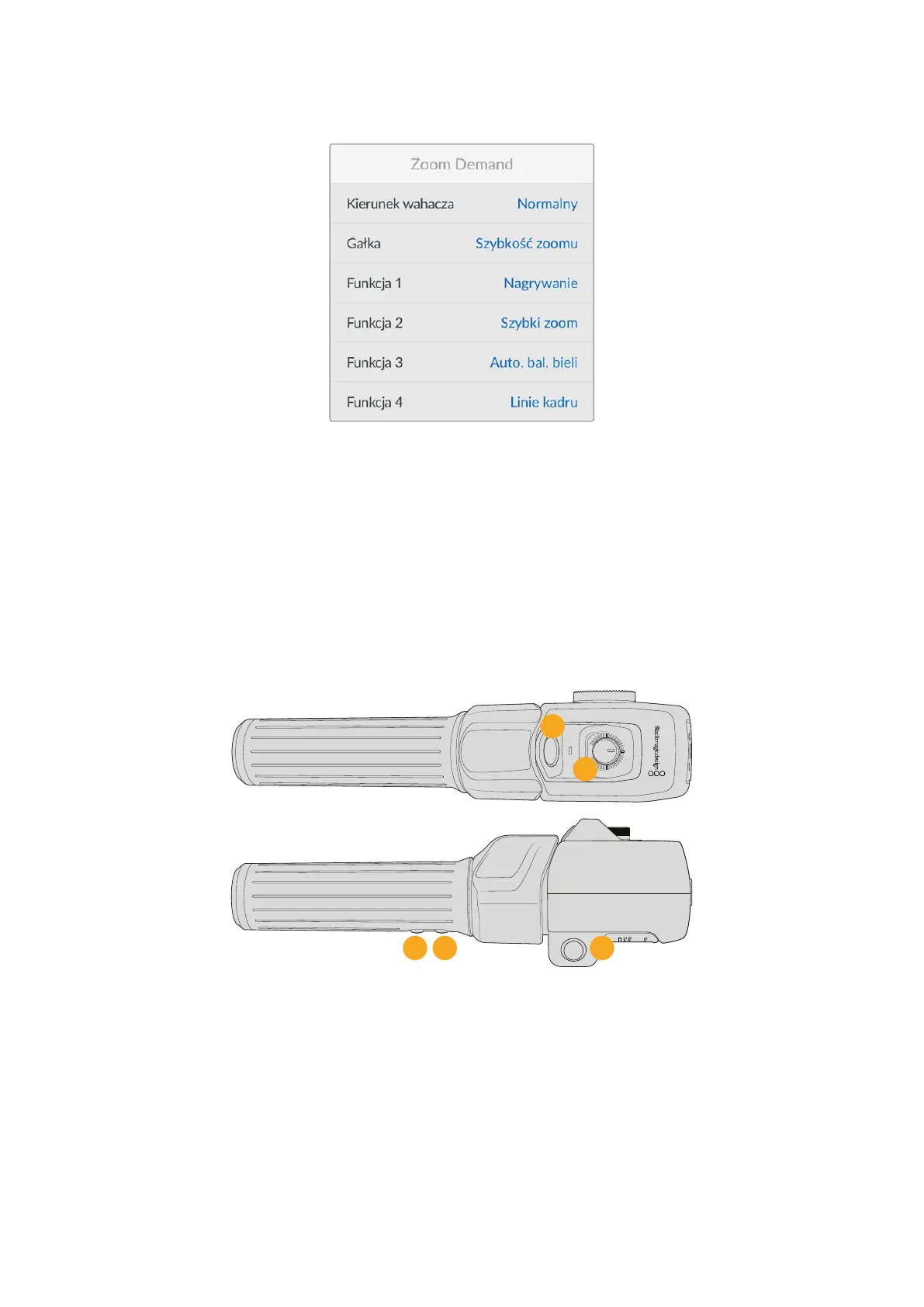 Blackmagic Zoom Demand posiada cztery przyciski funkcyjne zoomu oraz szybkie wybieranie,