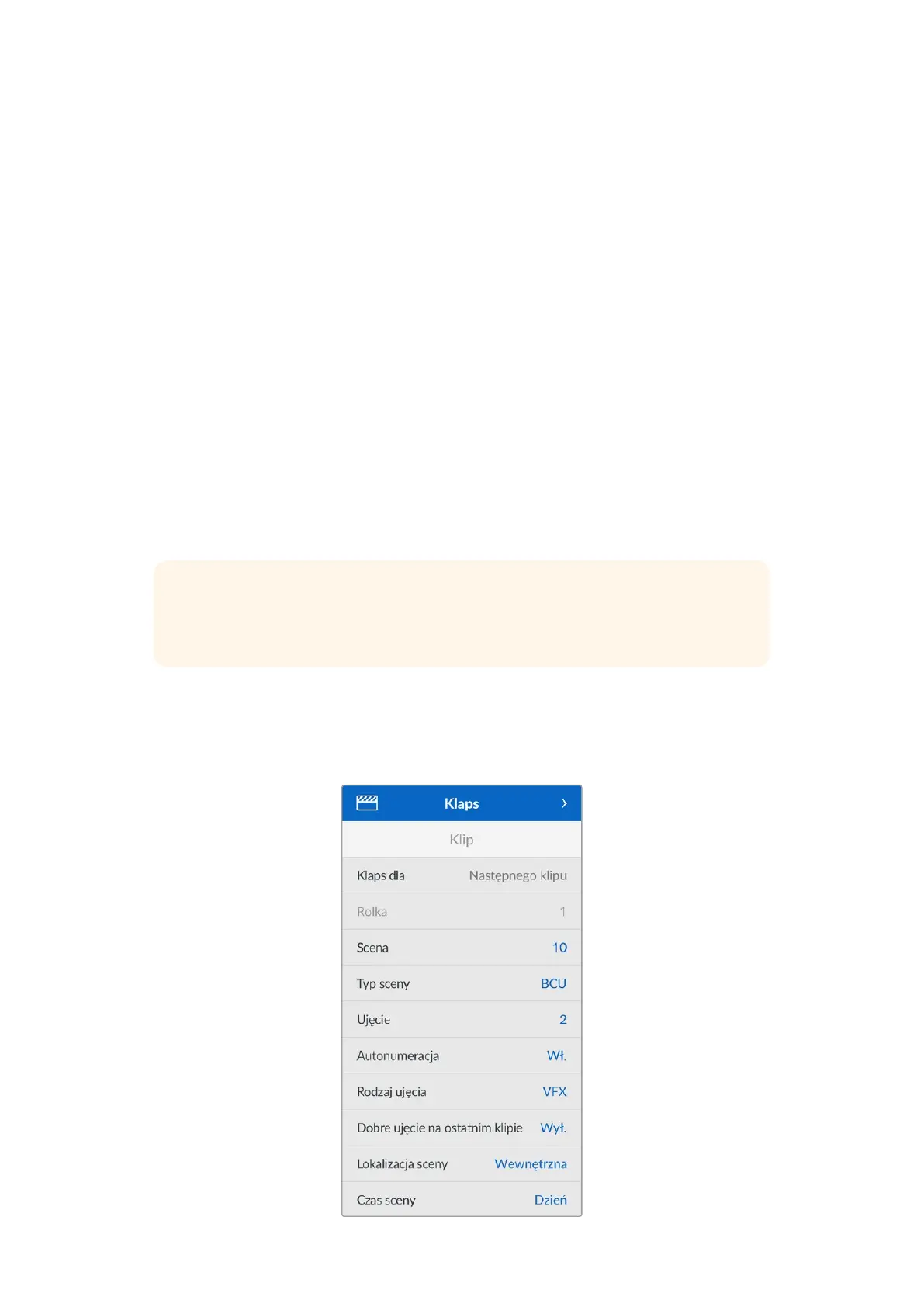 WSKAZÓWKA Metadane wprowadzone do klapsa są widoczne na wyjściu HDMI