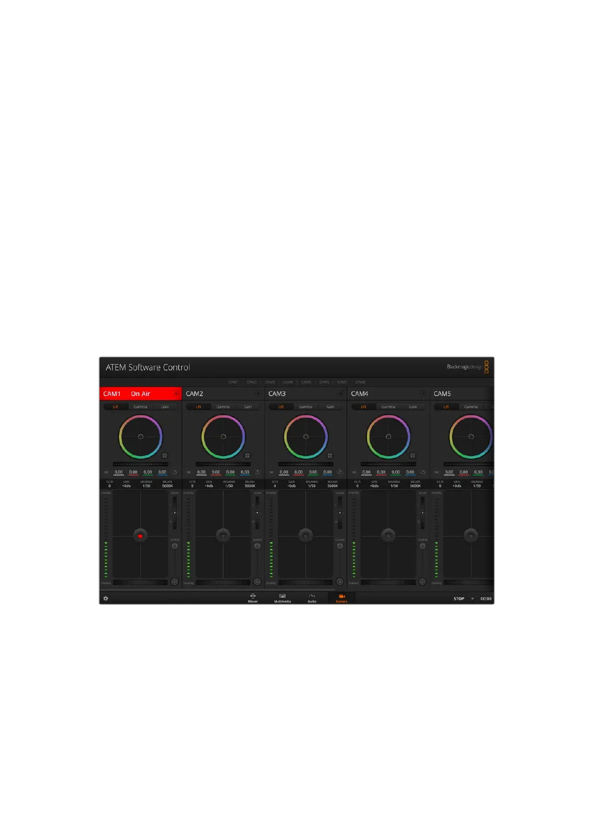 Uruchom ATEM Software Control i kliknij przycisk Kamera znajdujący się w dolnej części