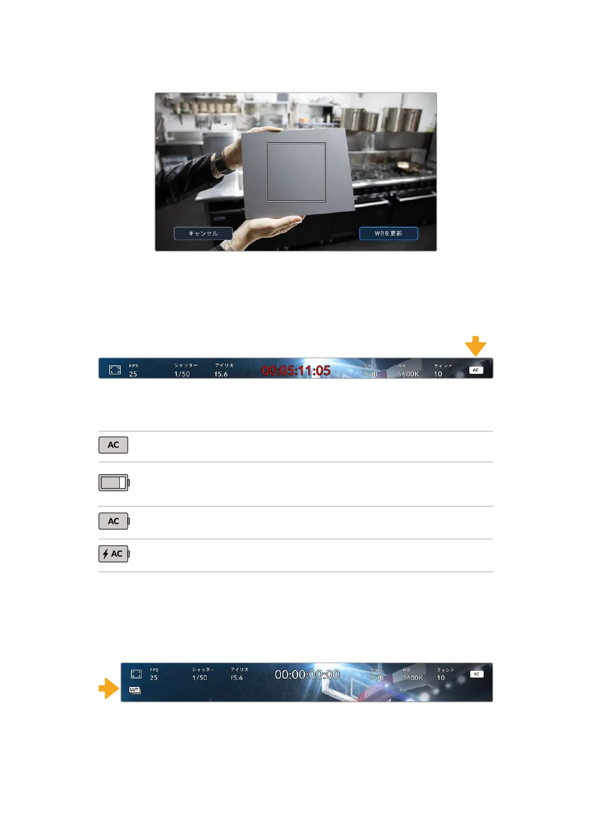 示 さ れ 、現 在 LUTが有効になっていることを示します。「収録(RECORD)」設 定 で「 フ ァ イ ル に LUTを適