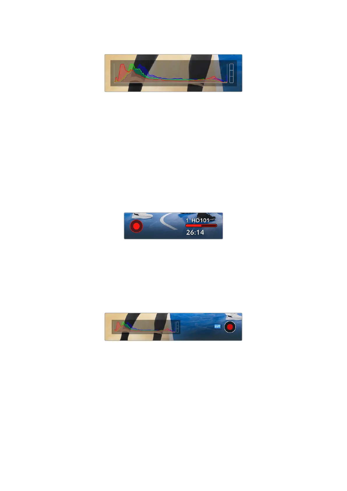 Внизу HDMI-дисплея, поруч із гістограмою, є індикатор кнопки запису. Під час запису ця