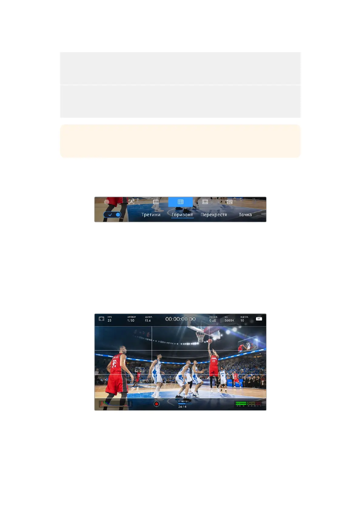 Сітка та перехрестя полегшують побудову композиції. На моделі Micro Studio Camera 4K G2