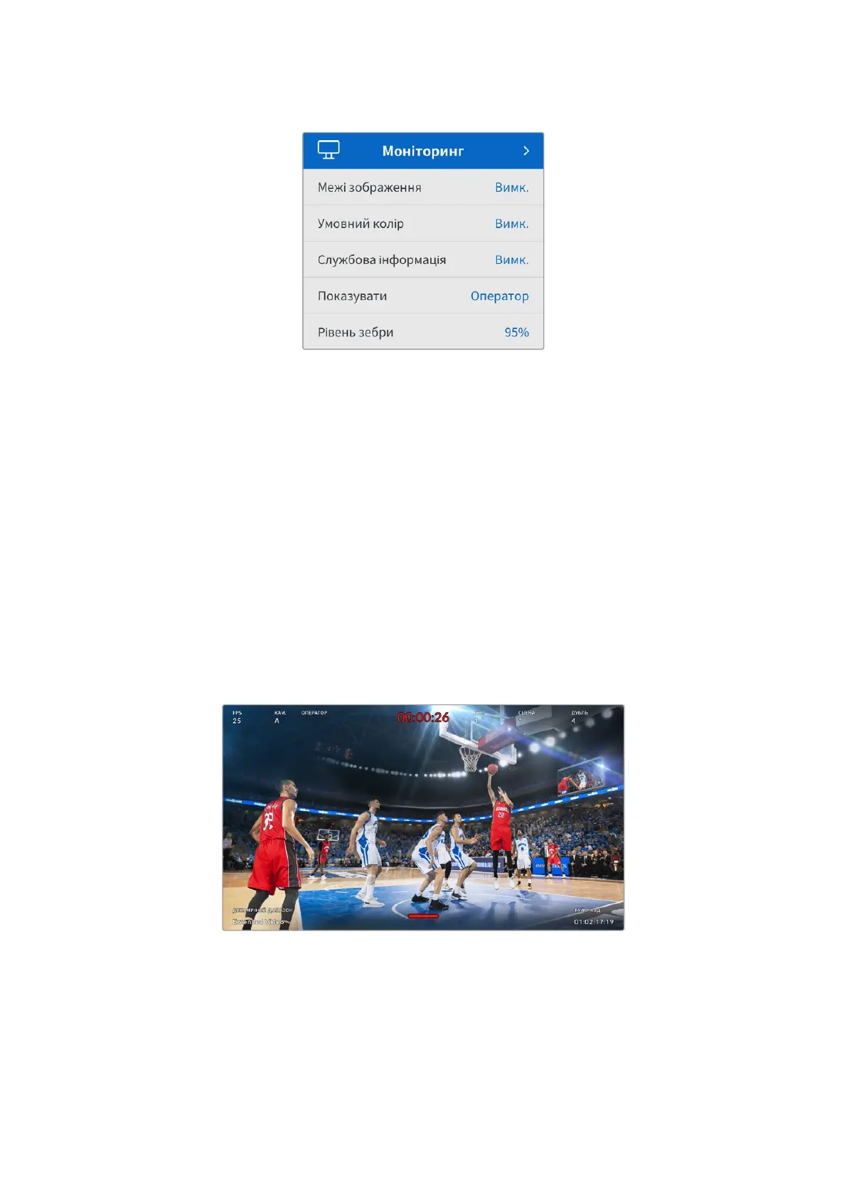 Докладні відомості див.в розділі «Опції моніторингу черезHDMI».