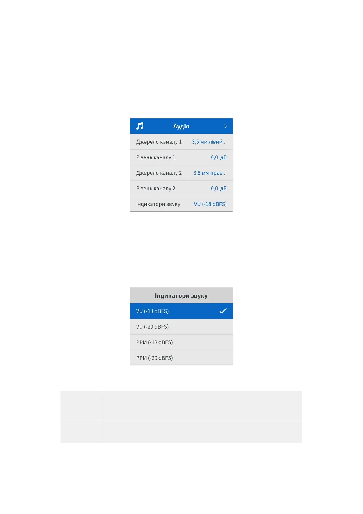 При роботі з моделлю Blackmagic Micro Studio Camera 4KG2 вкладка «Аудіо» дозволяє