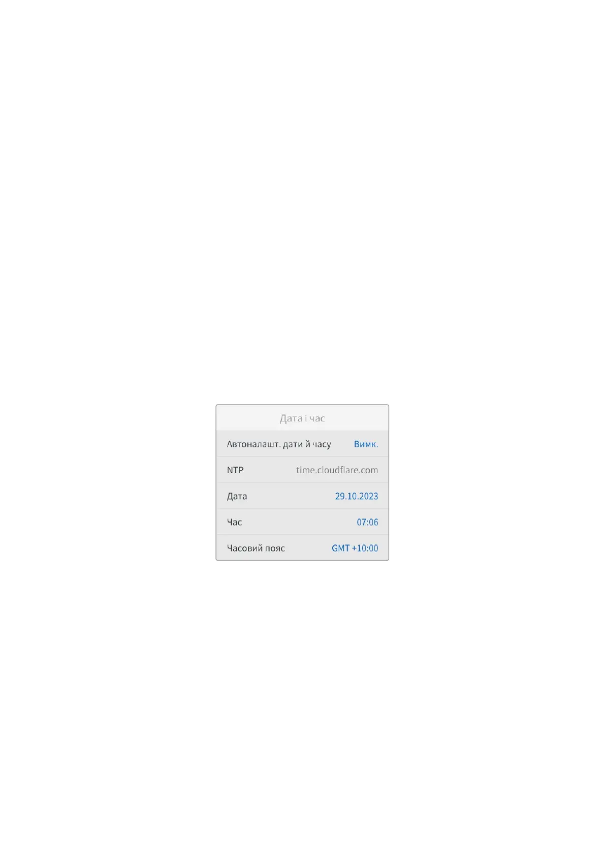 використовується time.cloudflare.com, проте можна вручну ввести адресу іншого NTP-сервера