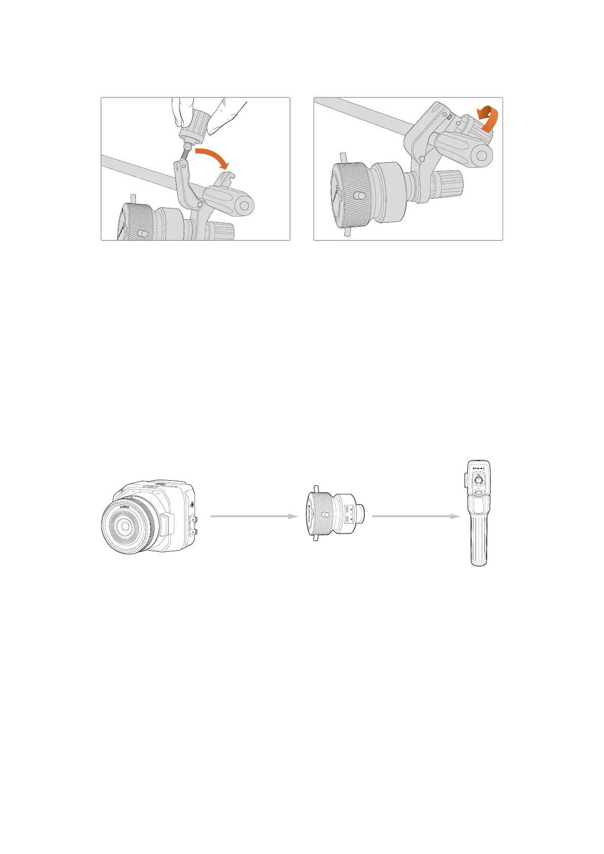 2 З відкритим фіксатором установіть кронштейн на штативну рукоятку та затисніть тримач,