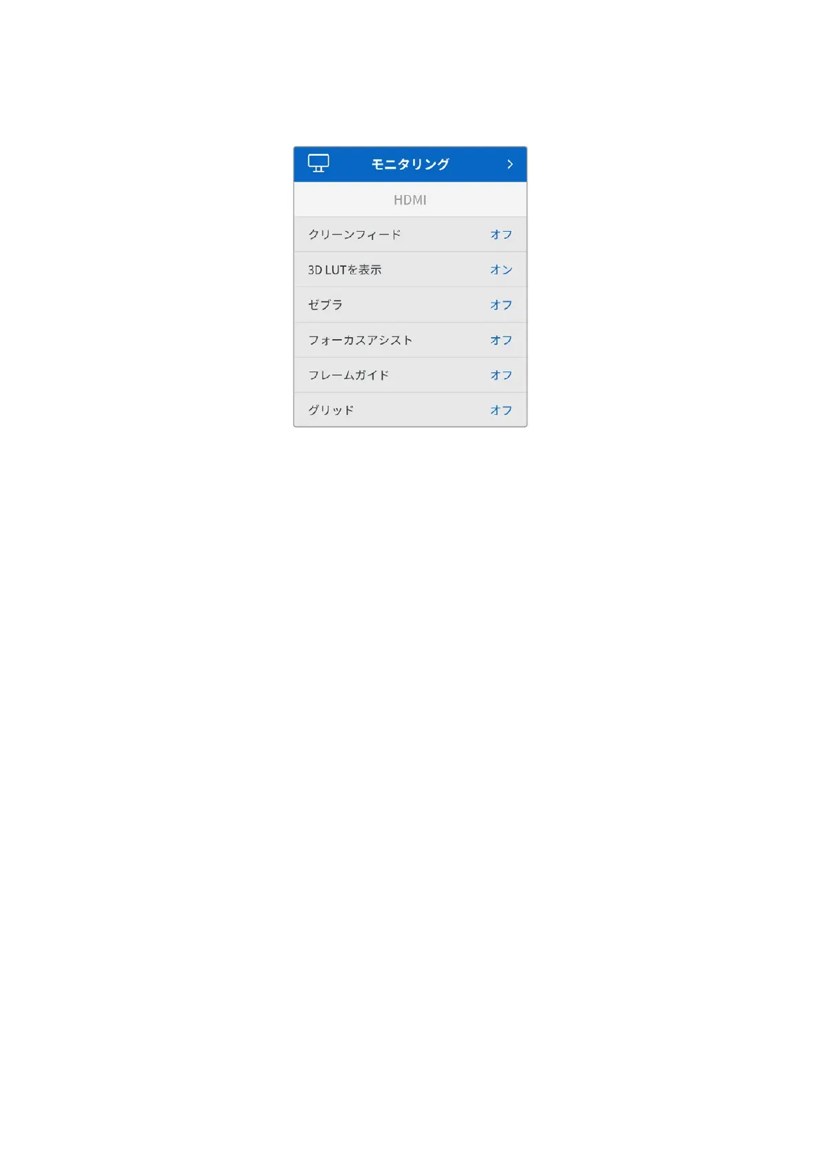 ニュ ア ル の「 HDMIモニタリングのオプション」セクションを参照してください。