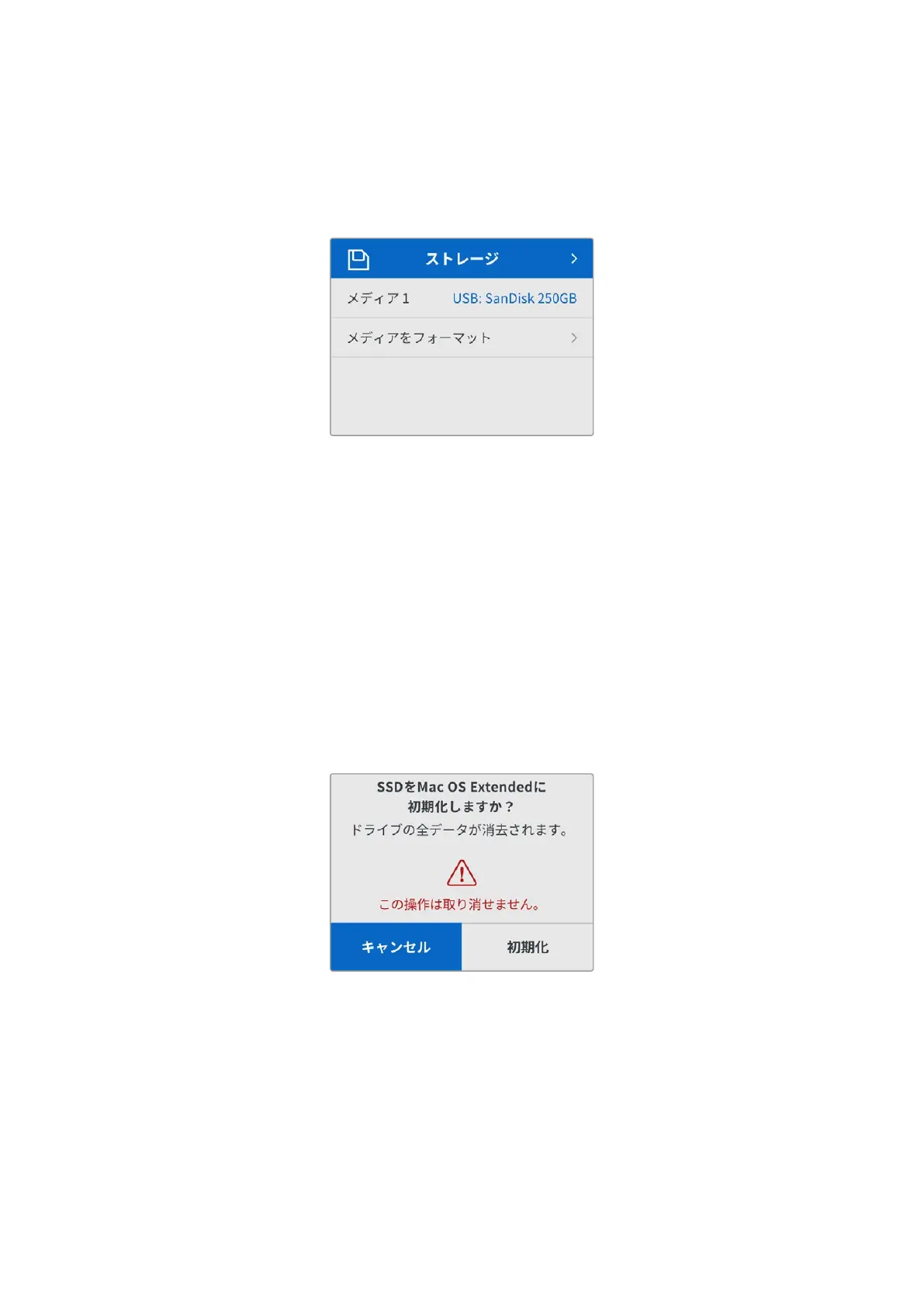 カメラは USB-CフラッシュディスクをHFS+ に フ ォ ー マ ッ ト し ま す 。こ れ は「 Mac OS X Extended」と し て