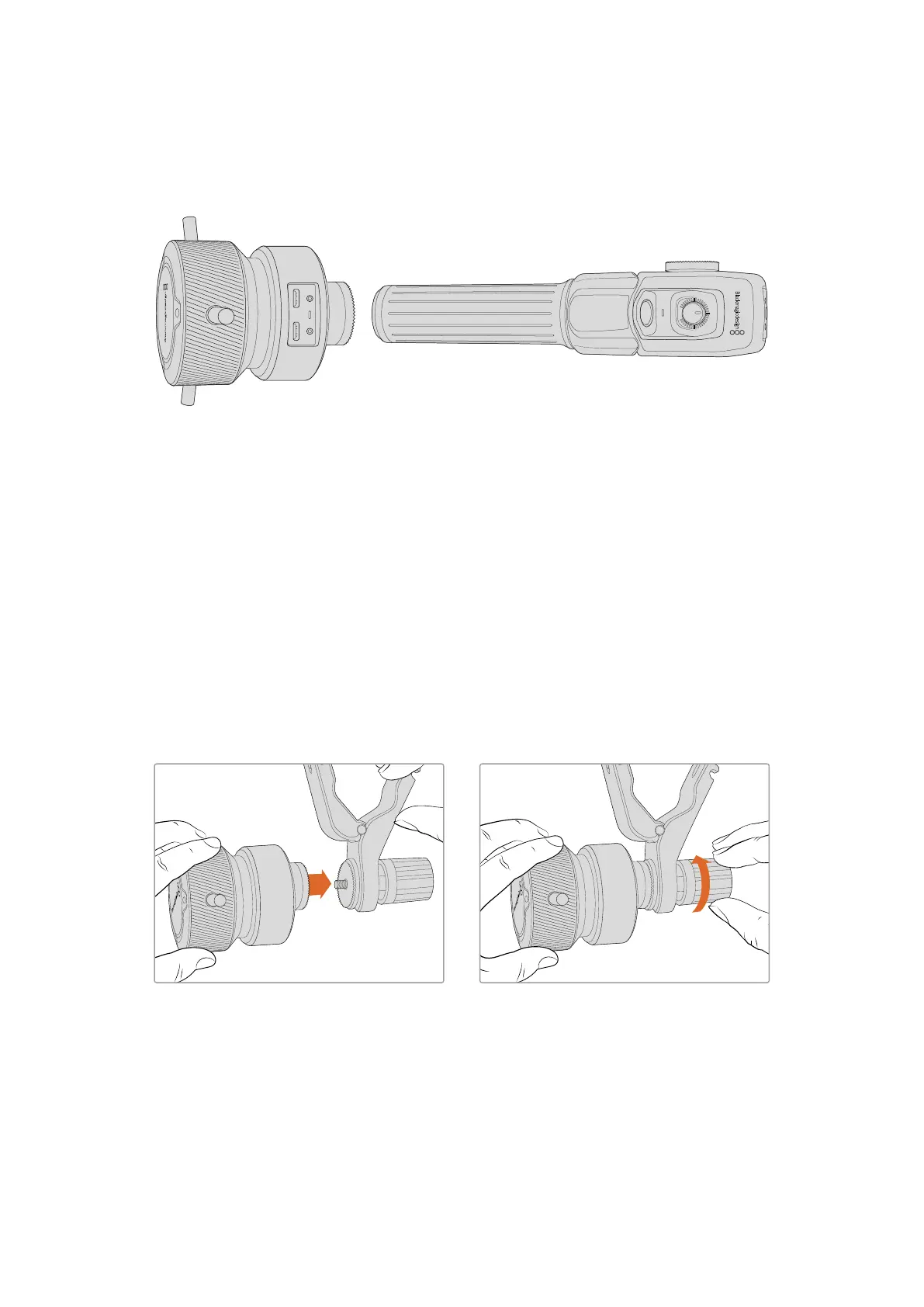 Zoom DemandおよびFocus Demandをブラケットに 取り付 けるには 、ロ ゼットマウントを 介して 接 続