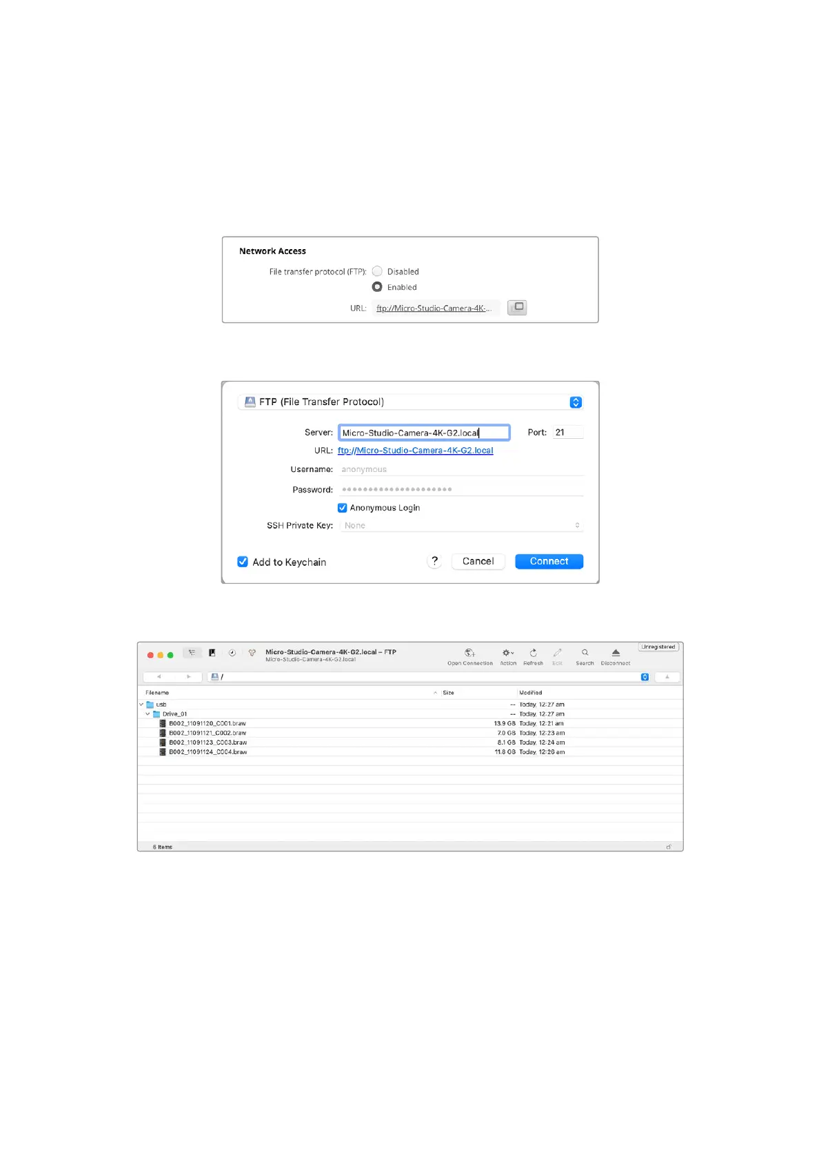 「usb」フォルダーを展開すると、接続されているUSBドライブ すべ てがリスト上に 表 示 されます。FTP