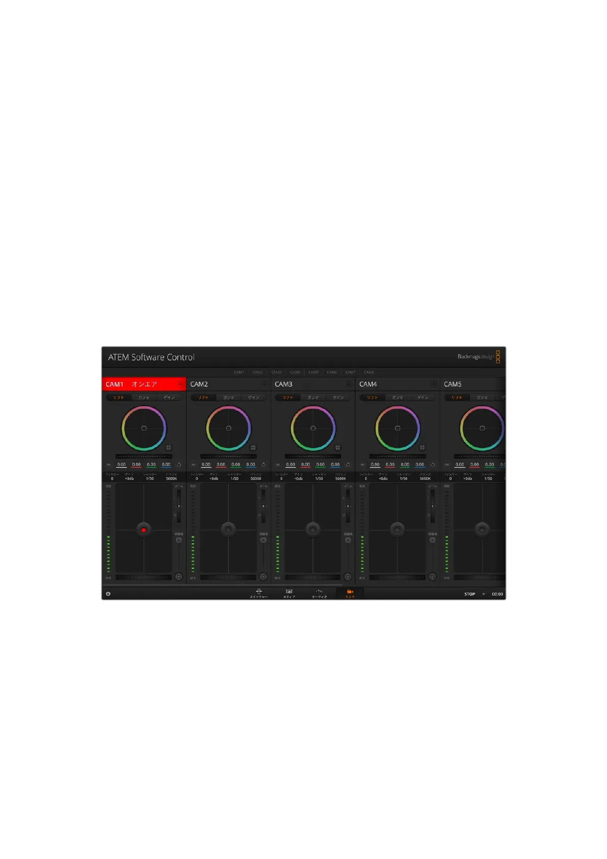 ラベル付きのBlackmagicカメラコントローラー 列 が 表 示され 、各カメラのイメージを調 整 / 微 調 整 する