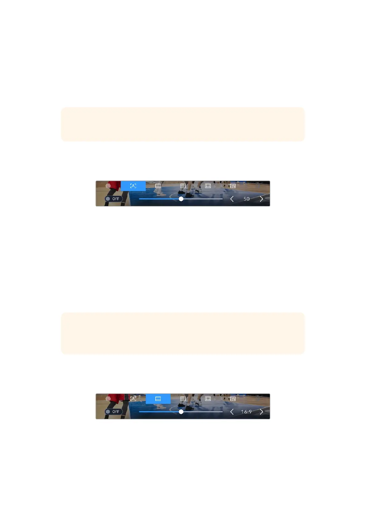 The ‘frame guide’ setting toggles the appearance of frame guides on the HDMI output. Frame