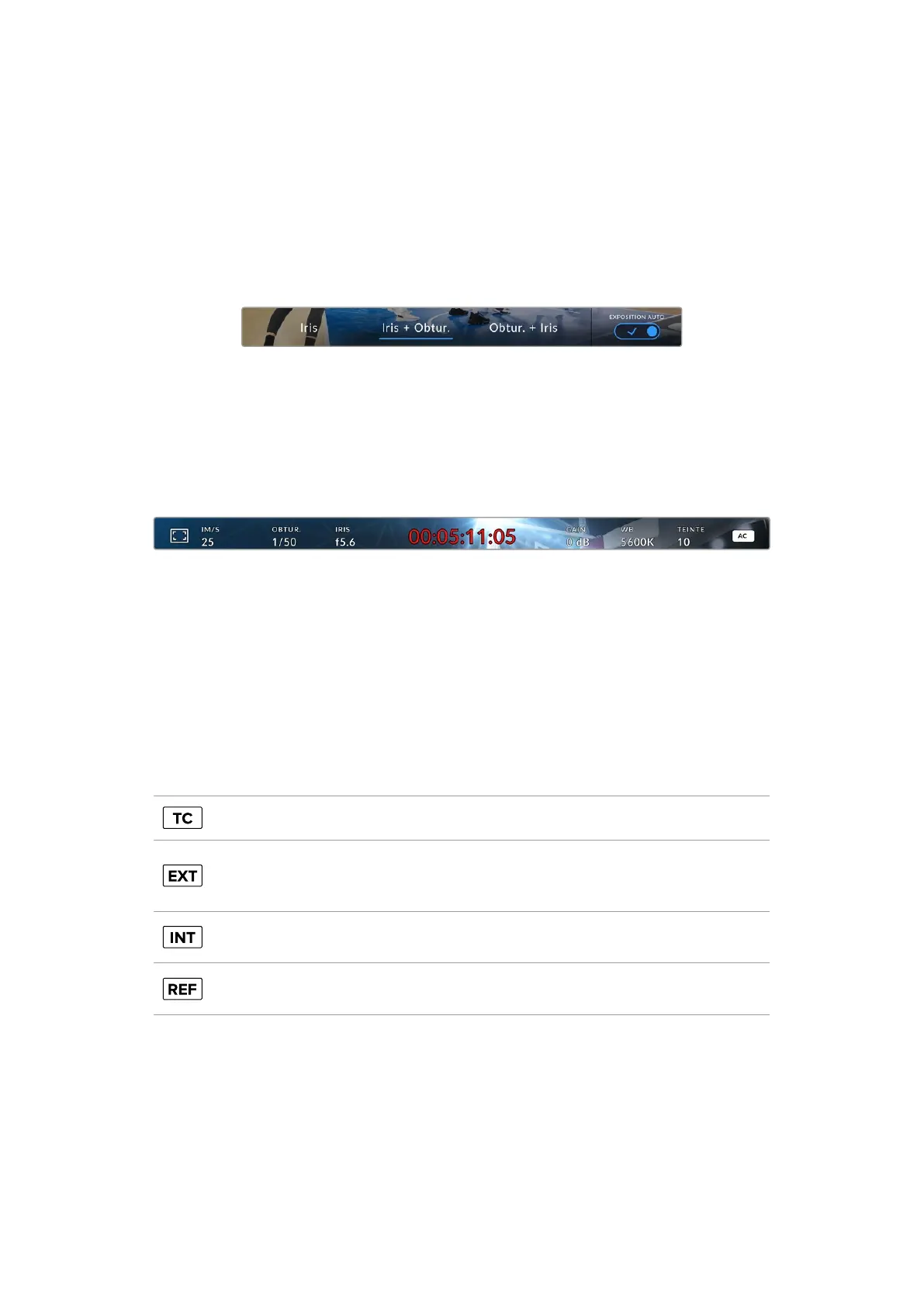 côté de l'indicateur de l’iris ou de l’obturateur en haut de l'écran HDMI.