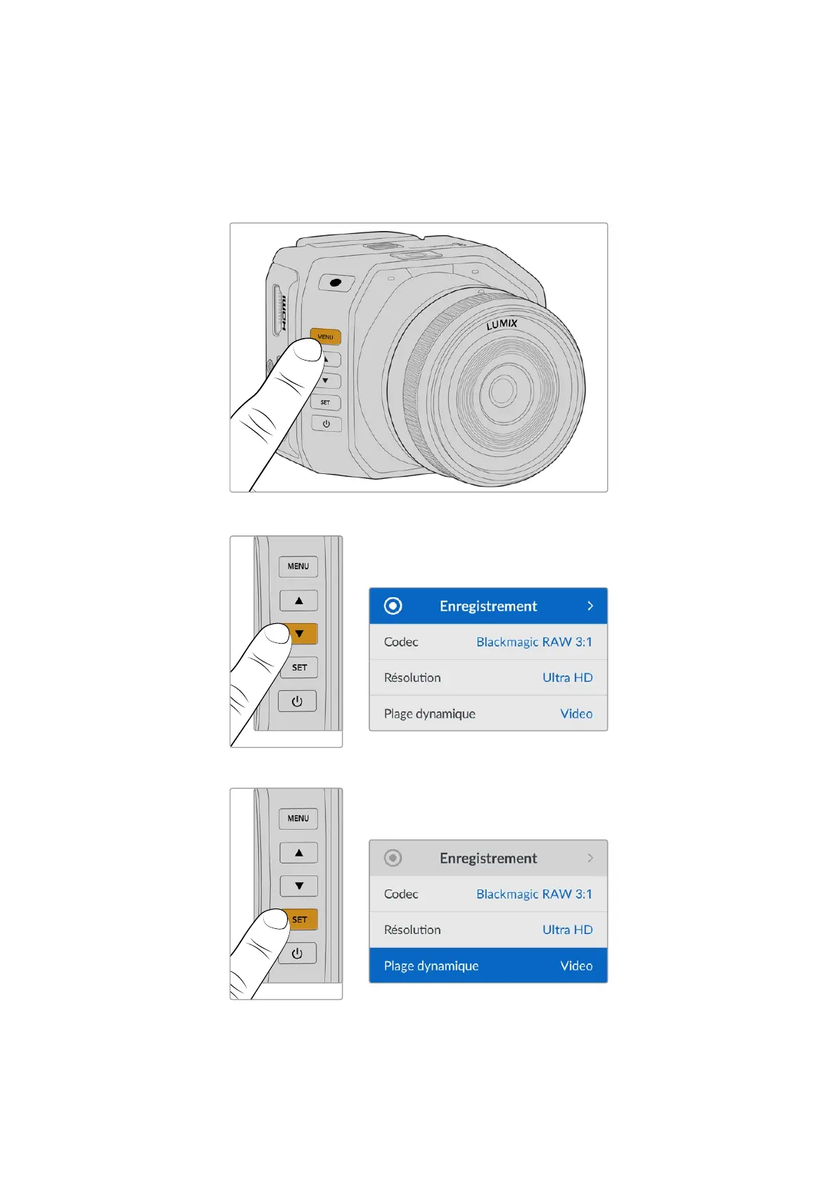 Appuyez sur le bouton Set pour sélectionner le sous-menu ou le paramètre