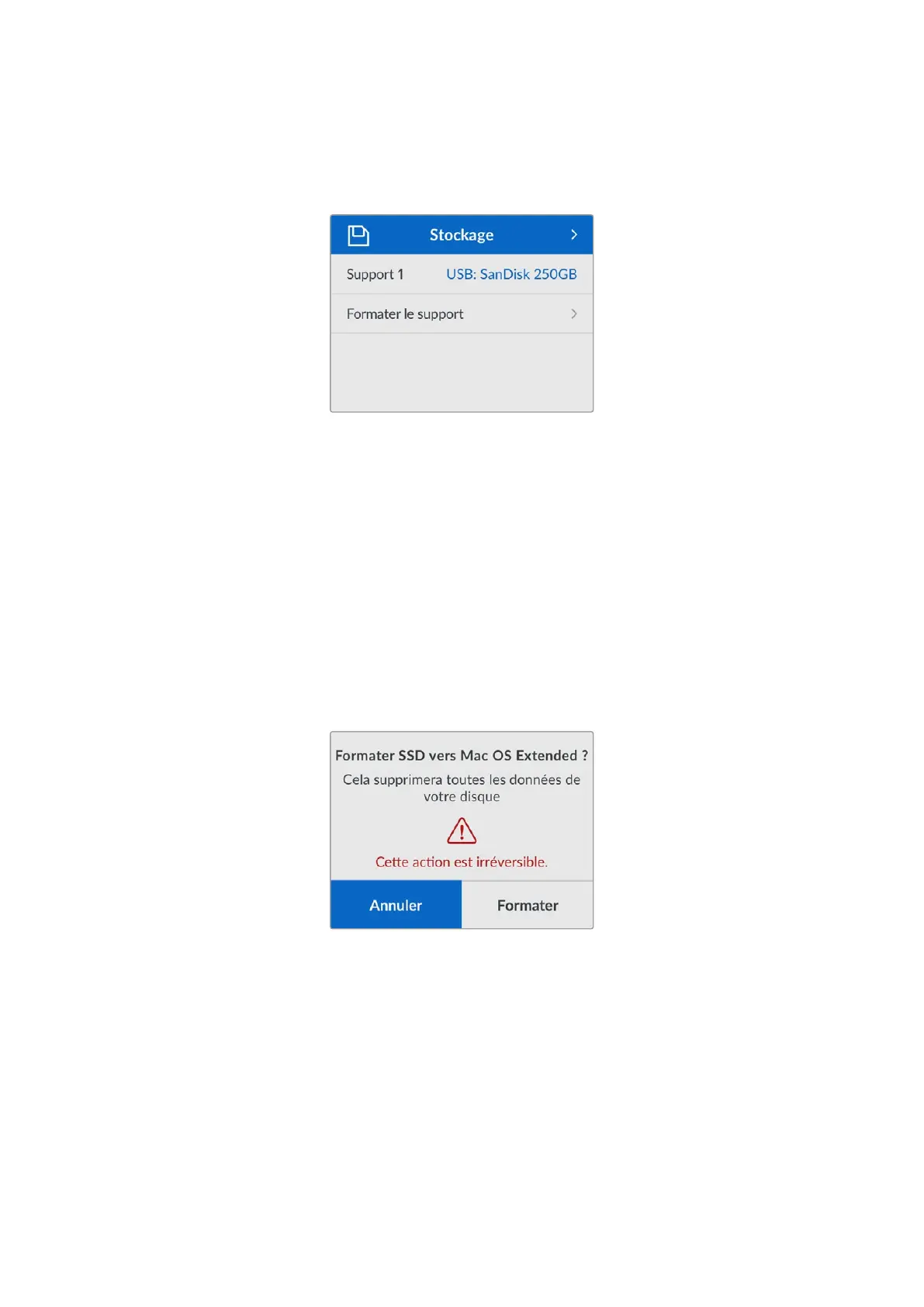 Les disques flash USB-C peuvent être directement formatés par la caméra ou via un ordinateur Mac