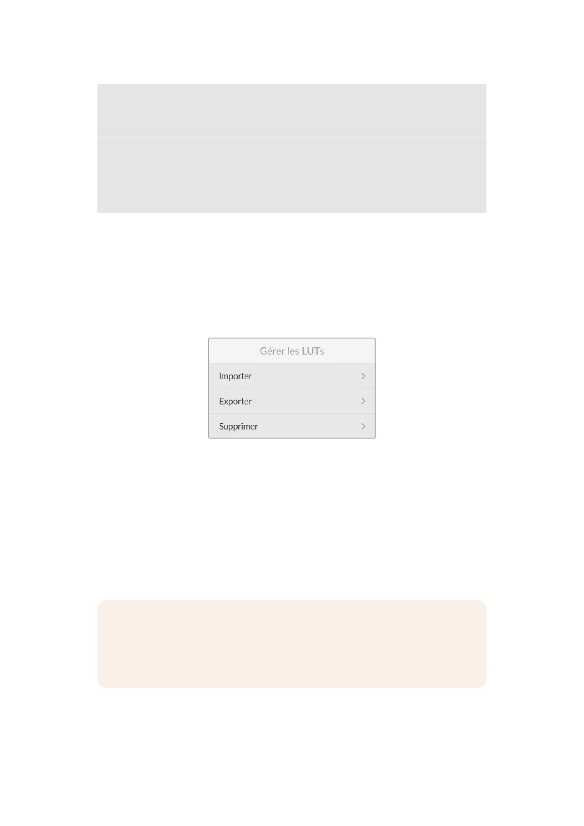 Utilisez le menu Gérer les LUTs pour importer, exporter ou supprimer des LUTs.