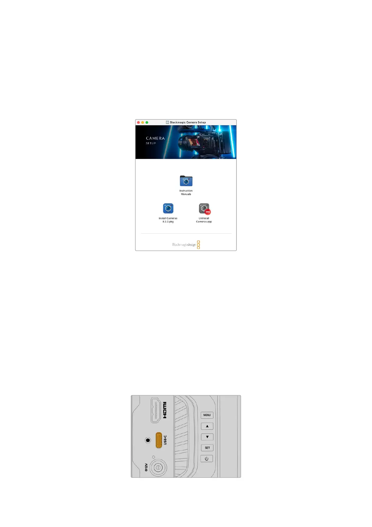 Après avoir installé le logiciel Blackmagic Camera Setup le plus récent sur votre ordinateur,