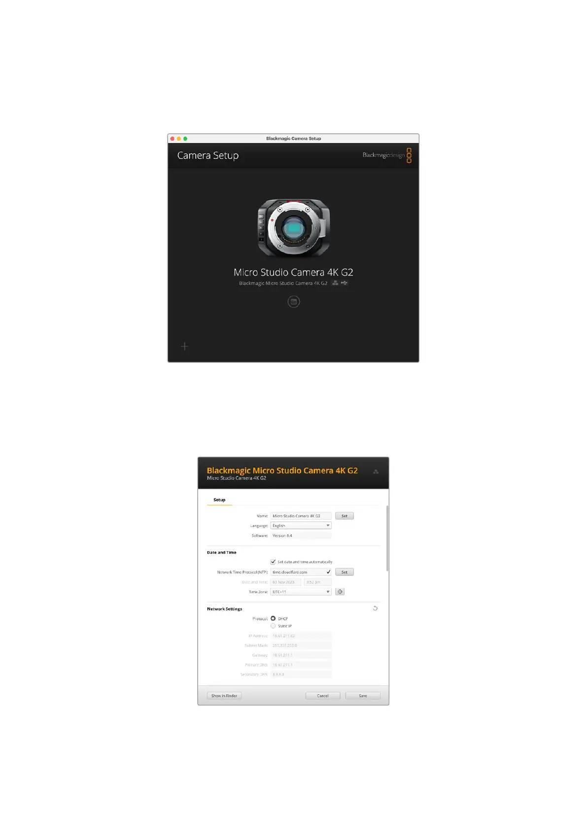 2 Lancez le Blackmagic Camera Setup. Votre Micro Studio Camera 4K G2 sera nommée dans la